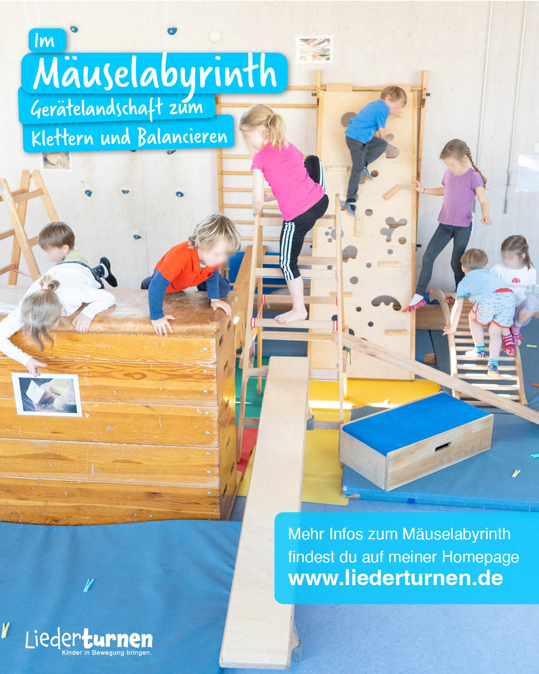 Wie kommen flinke Mäuse in einem Labyrinth aus Leitern, schiefen Ebenen und Turnkästen an ihr Futter? In diesem Parcours verwandeln sich die Kinder in Mäuse und überwinden große und kleine Hindernisse.