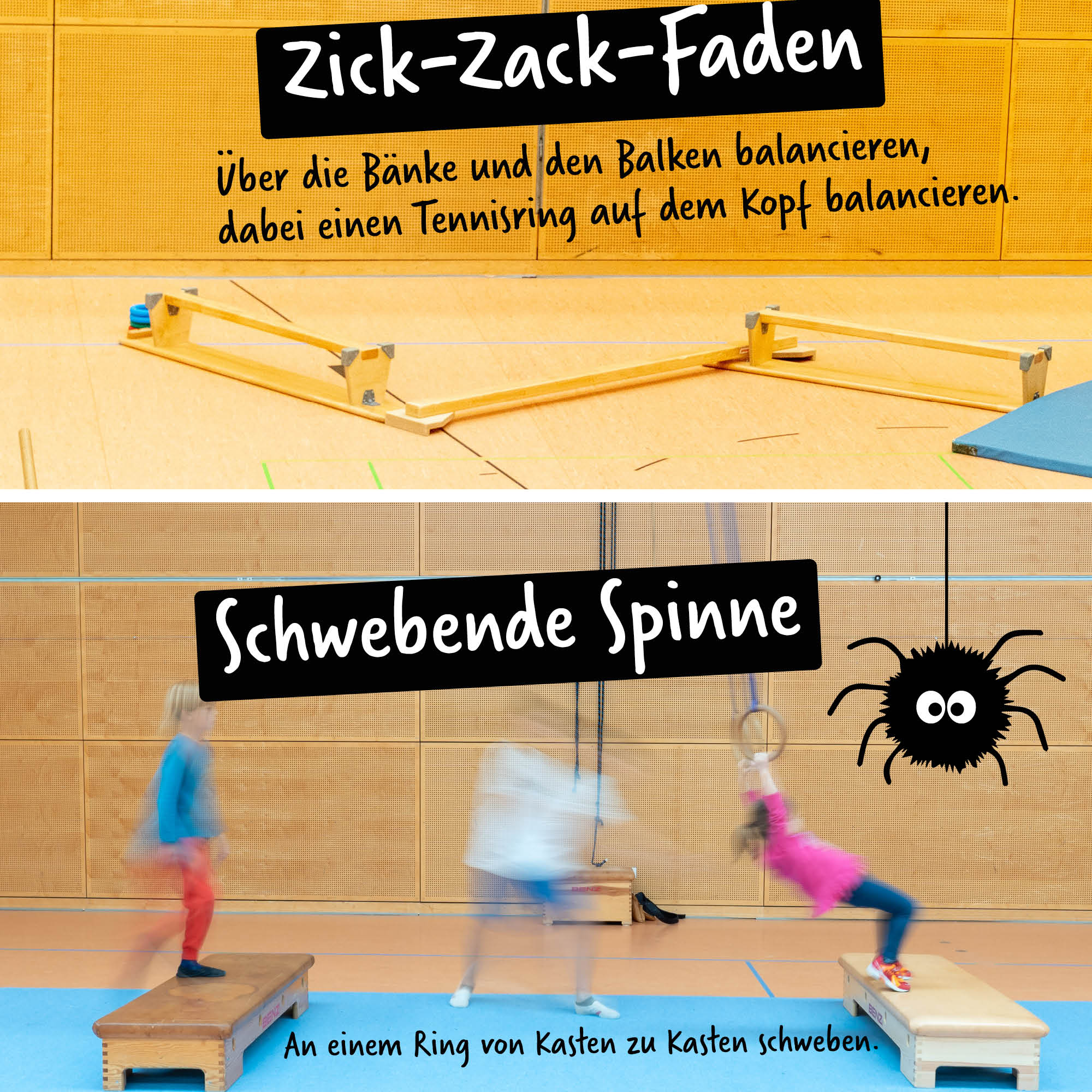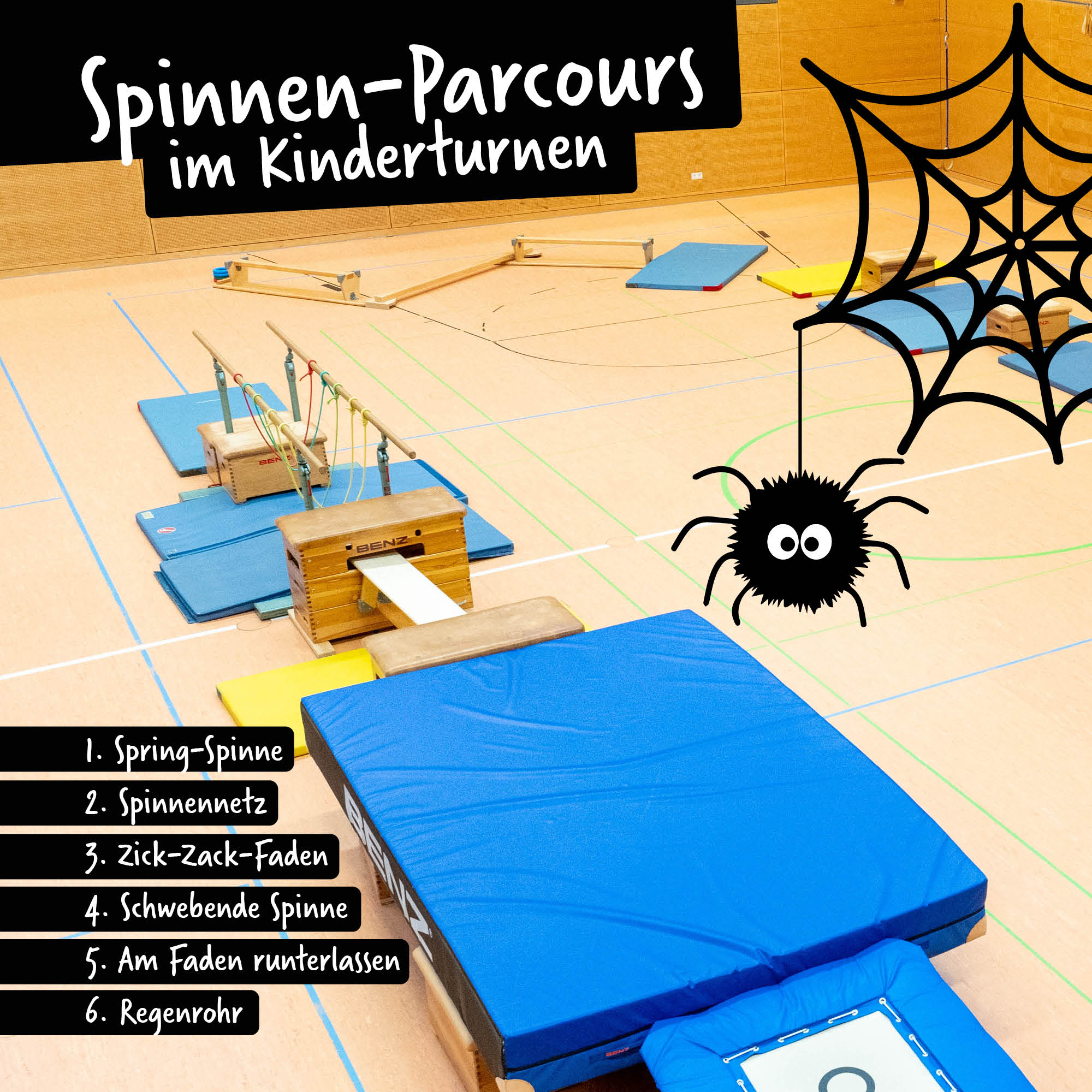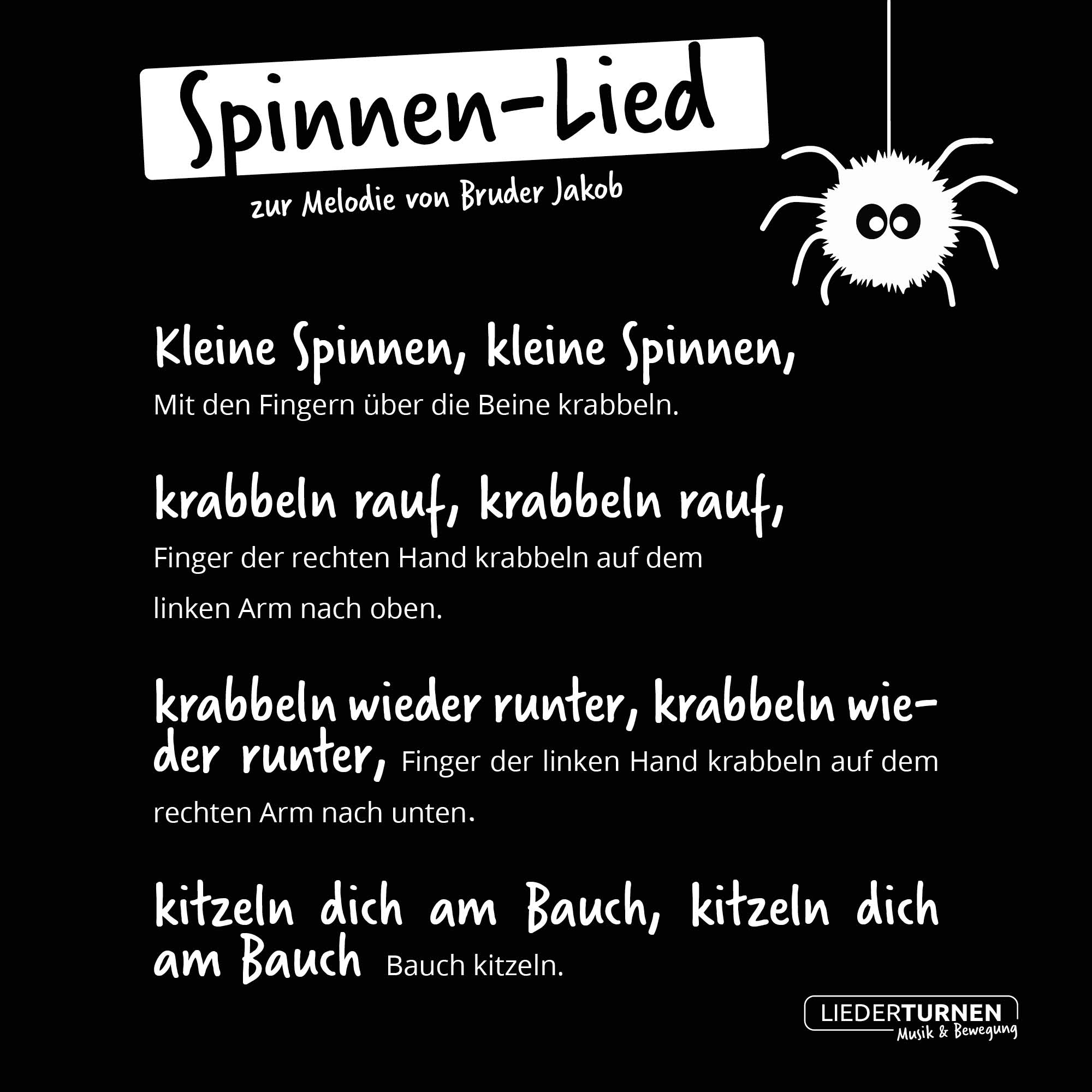 Nach dem Aufwärmlied "Wir turnen durch das Jahr" singen wir "Kleine Spinnen", weil wir im Herbst zu Hause öfter mal Spinnen in den Ecken und an den Wänden entdecken.