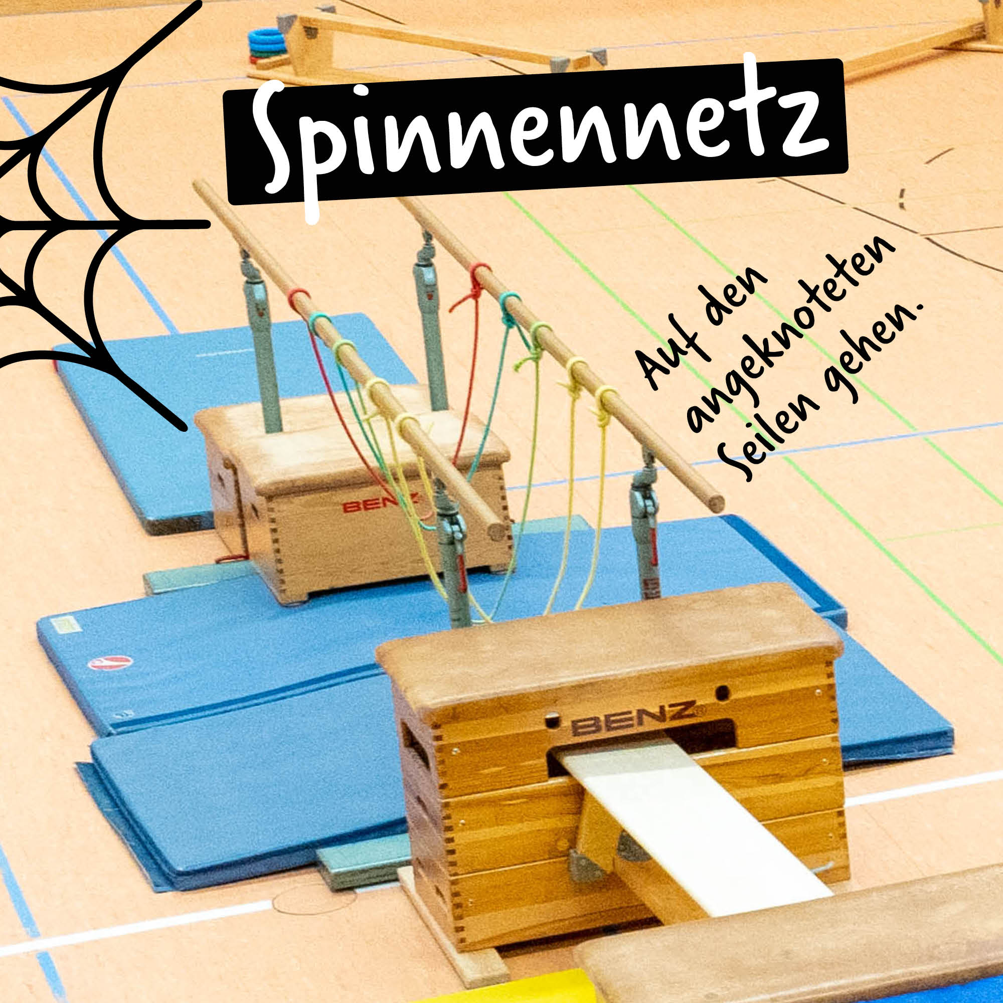 Dann geht`s zum Spinnen-Parcours. Im Abschlusskreis singen wir noch einmal das Lied "Kleine Spinnen" und krabbeln uns dabei mit den Händen gegenseitig über den Rücken.