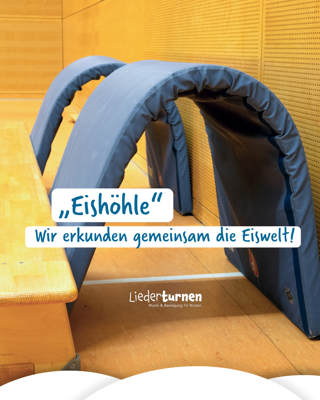 - „Kommt alle zusammen, das Eis wird brüchig und wir müssen von Eisscholle zu Eisscholle springen, um nicht in den See zu fallen!“ Die Teppichfliesen werden auf die rutschfeste Seite gedreht und sind nun die „Eisschollen“. Auf ihnen müssen wir uns jetzt „bis zum Ufer“ bewegen. Dazu einen Bereich als Ufer vorgeben und die Kinder anregen, sich mit den Fliesen den Weg dorthin zu legen, ohne „ins Wasser“ zu fallen.