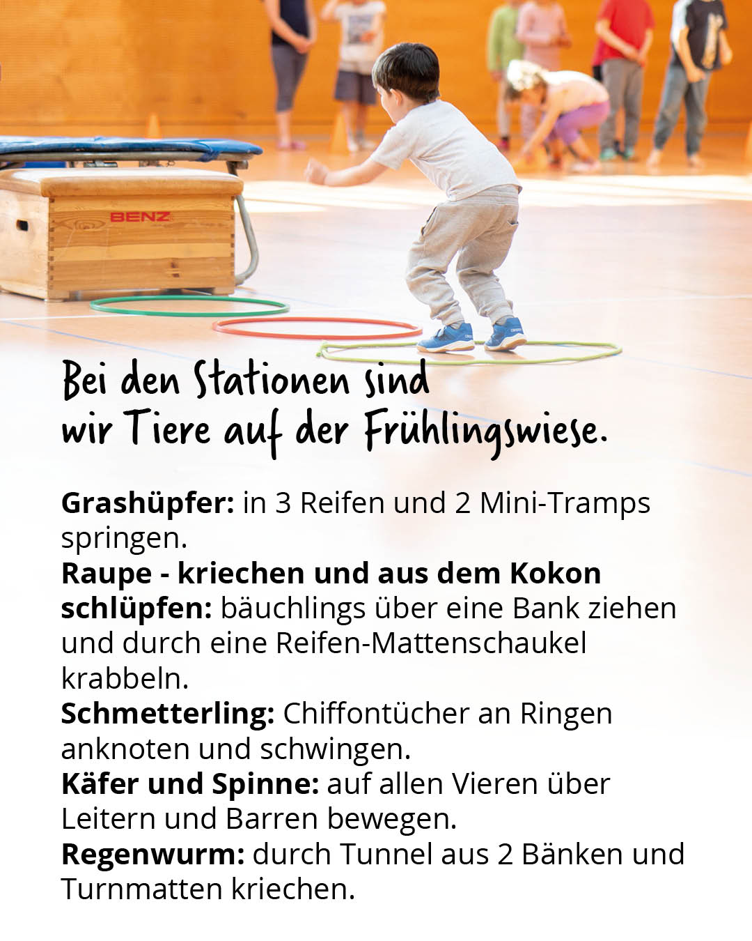 Bei den Stationen sind wir Tiere auf der Frühlingswiese.