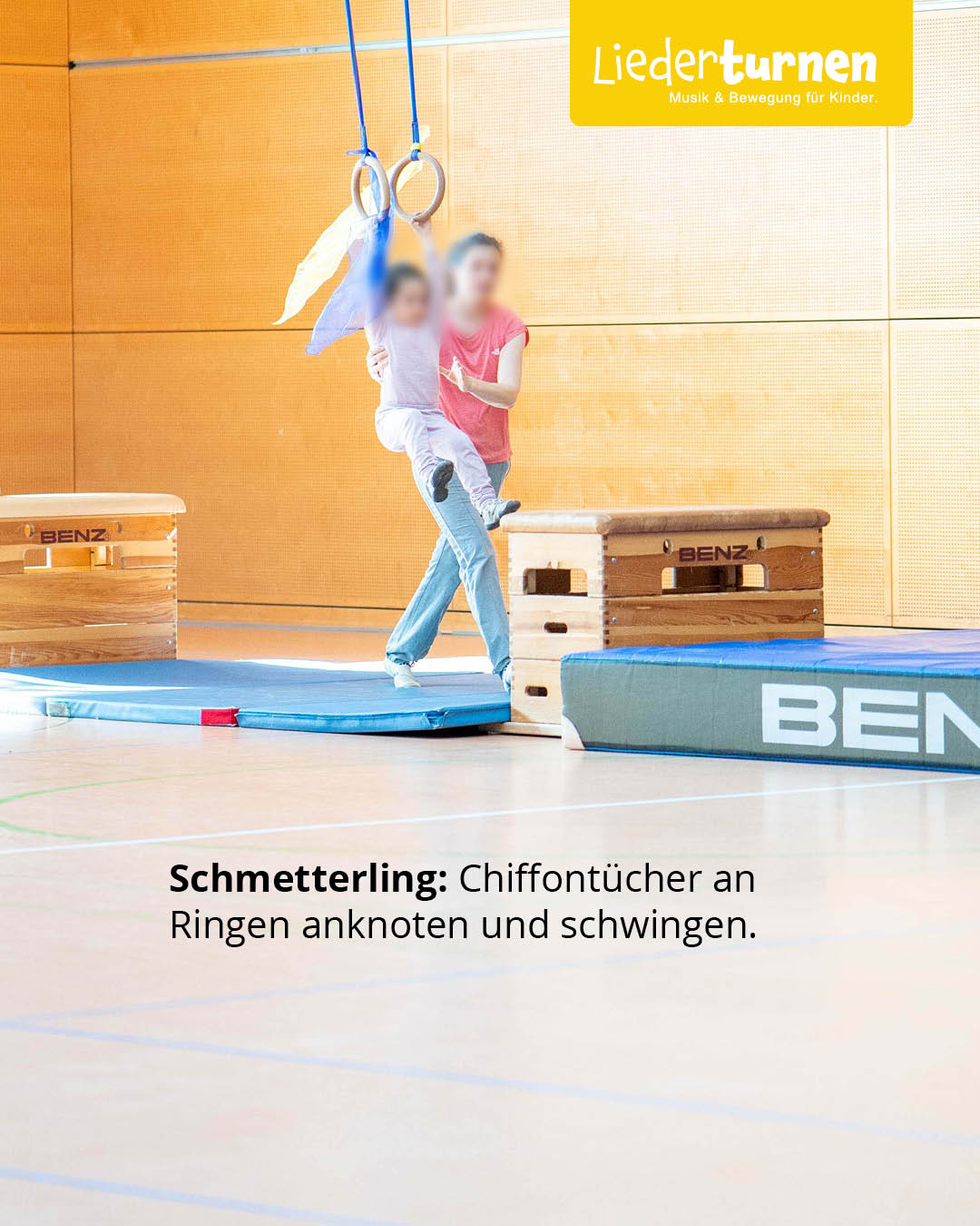 Schmetterling: Chiffontücher an Ringen anknoten und schwingen.