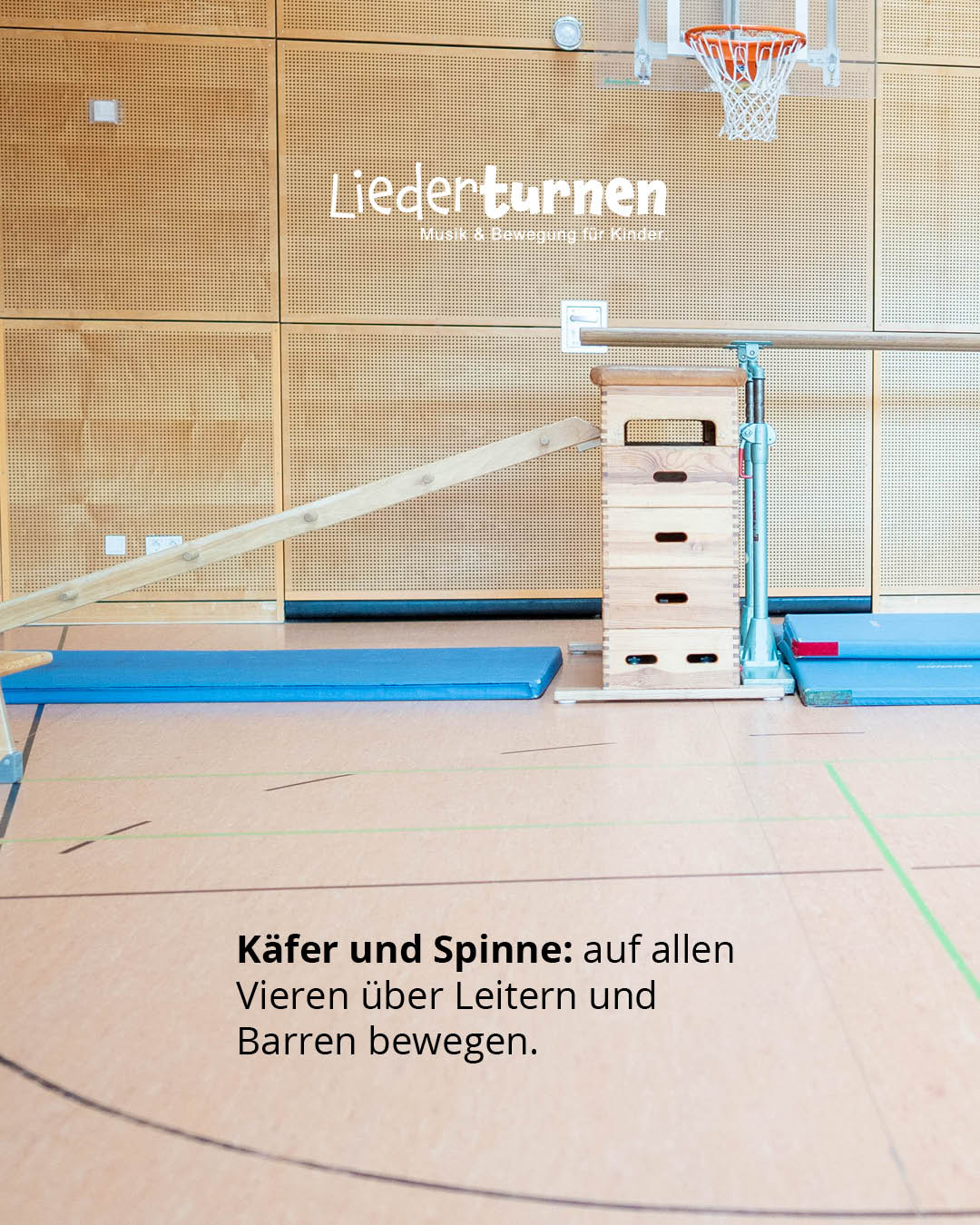Käfer und Spinne: auf allen Vieren über Leitern und Barren bewegen.