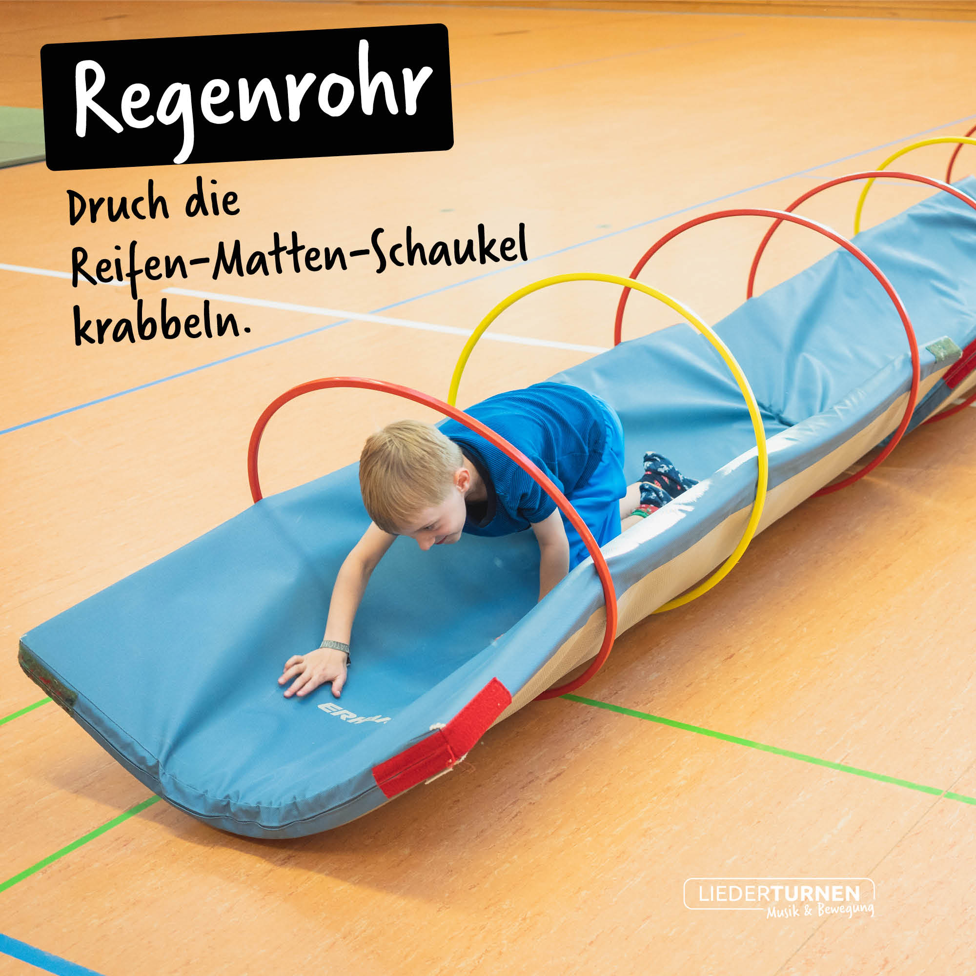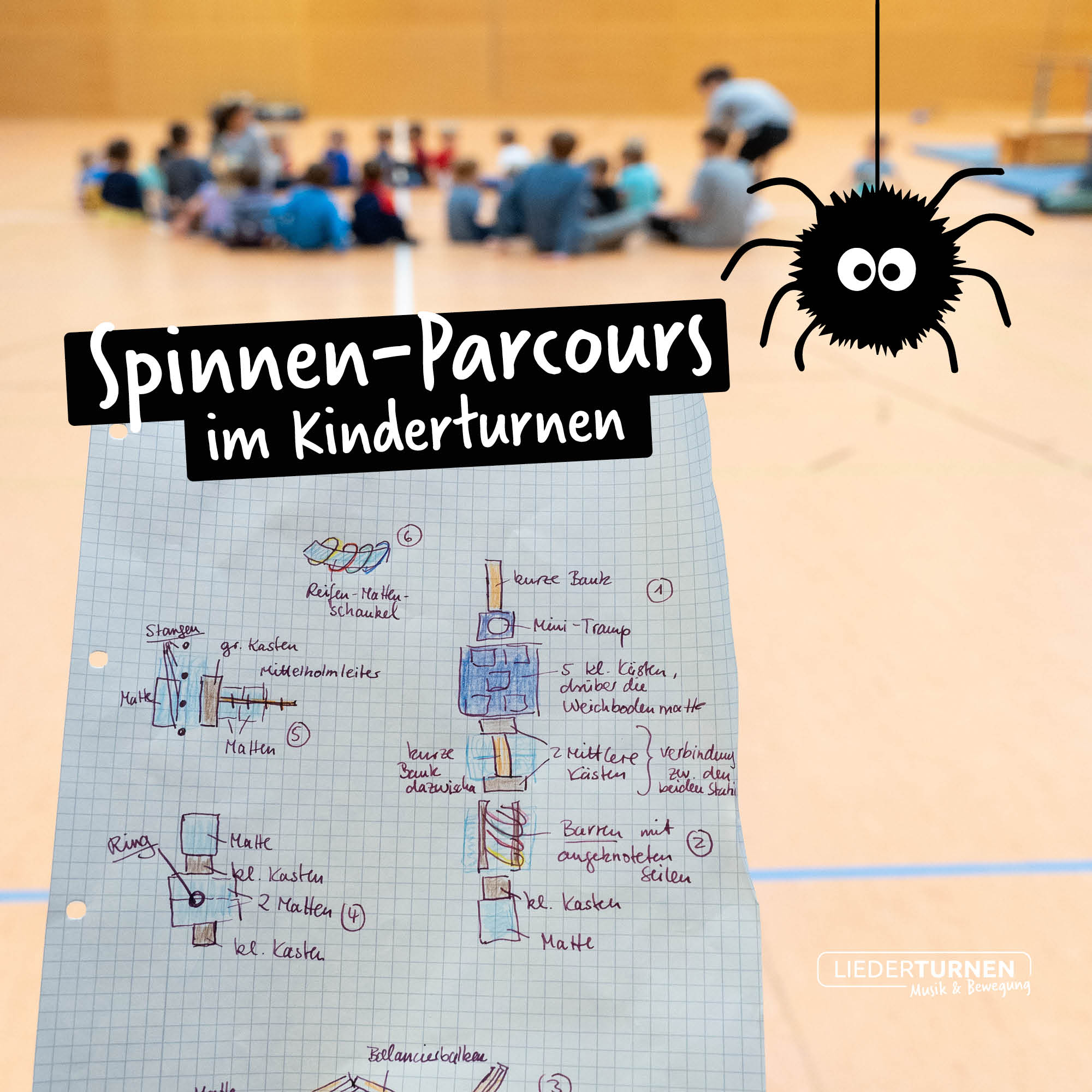 Nach dem Aufwärmlied "Wir turnen durch das Jahr" singen wir "Kleine Spinnen", weil wir im Herbst zu Hause öfter mal Spinnen in den Ecken und an den Wänden entdecken.